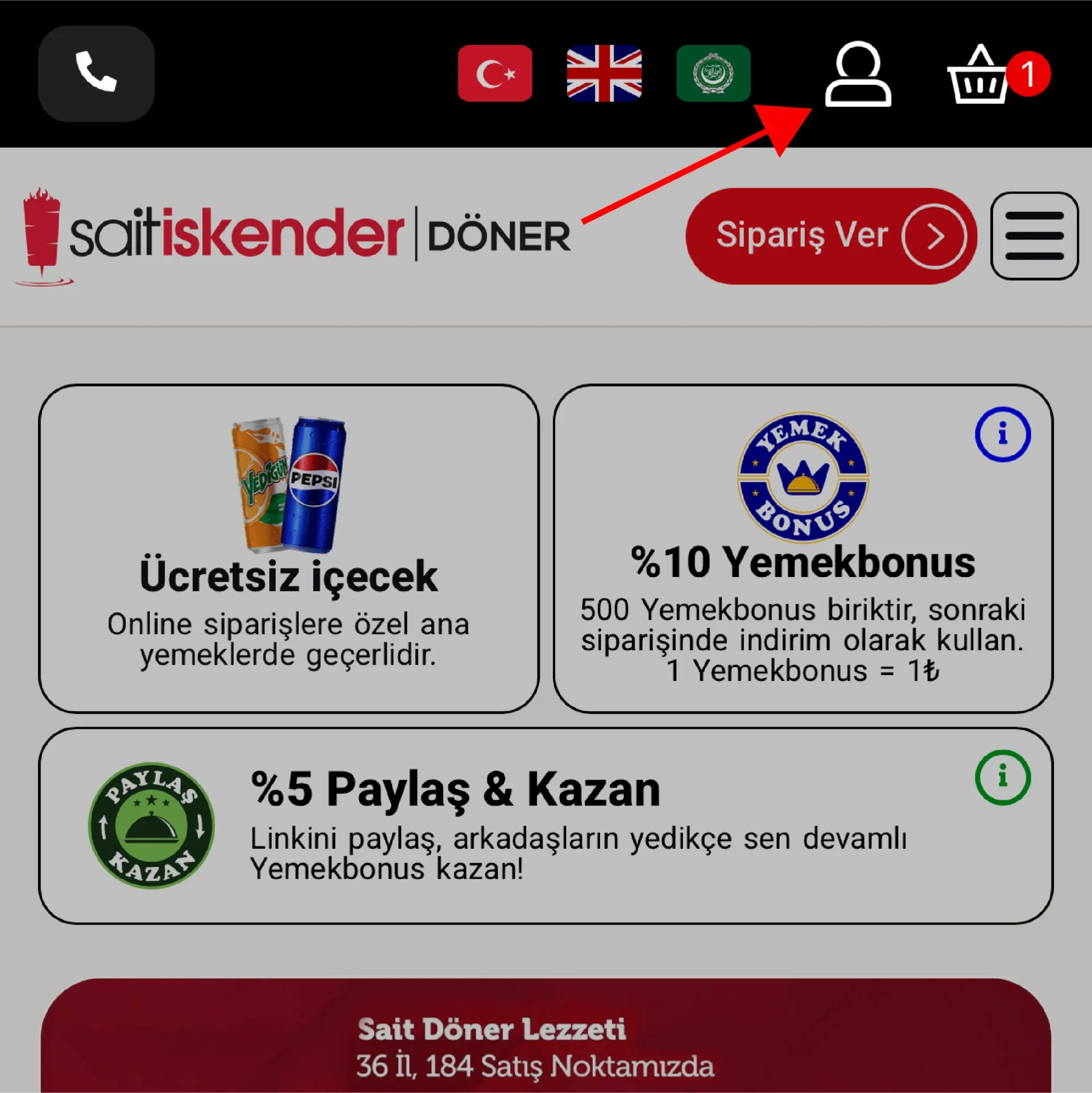 1. adım: Sağ üstte bulunan “Hesabım” butonuna tıkla.