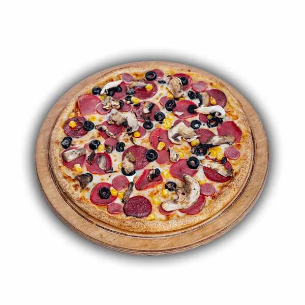 Pizza Sosu, Mozzarella Peyniri, Salam, Sosis, Sucuk, Mısır, Siyah Zeytin, Mantar