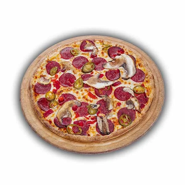 Pizza Sosu, Mozzarella Peyniri, Sucuk, Jalapeno Biber, Közlenmiş Biber, Mantar