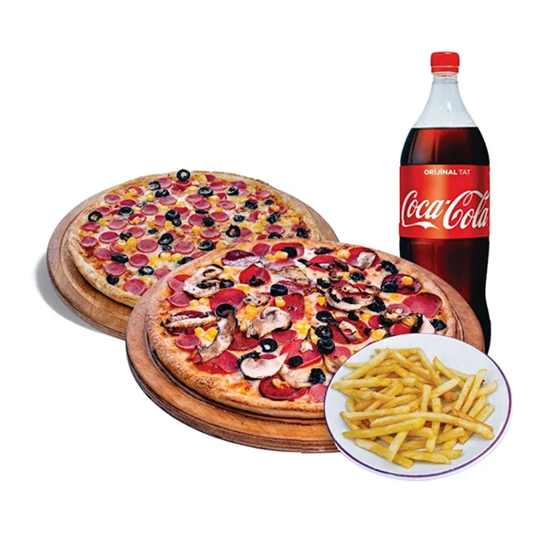 2 Küçük Boy Pizza + Çıtır Patates + Coca Cola 1 L