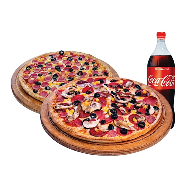 2 Büyük Boy Pizza + Coca Cola 1 L